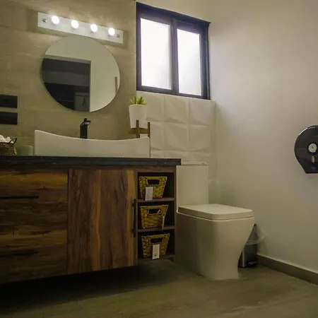 Casa Otoch, Riviera Maya A 5 Min De Playa has the view of the garden. Bathroom facilities at the Puerto Morelos accommodation also include a separate toilet and a shower. A hairdryer, complimentary toiletries, and bath sheets are included to enhance your comfort.
